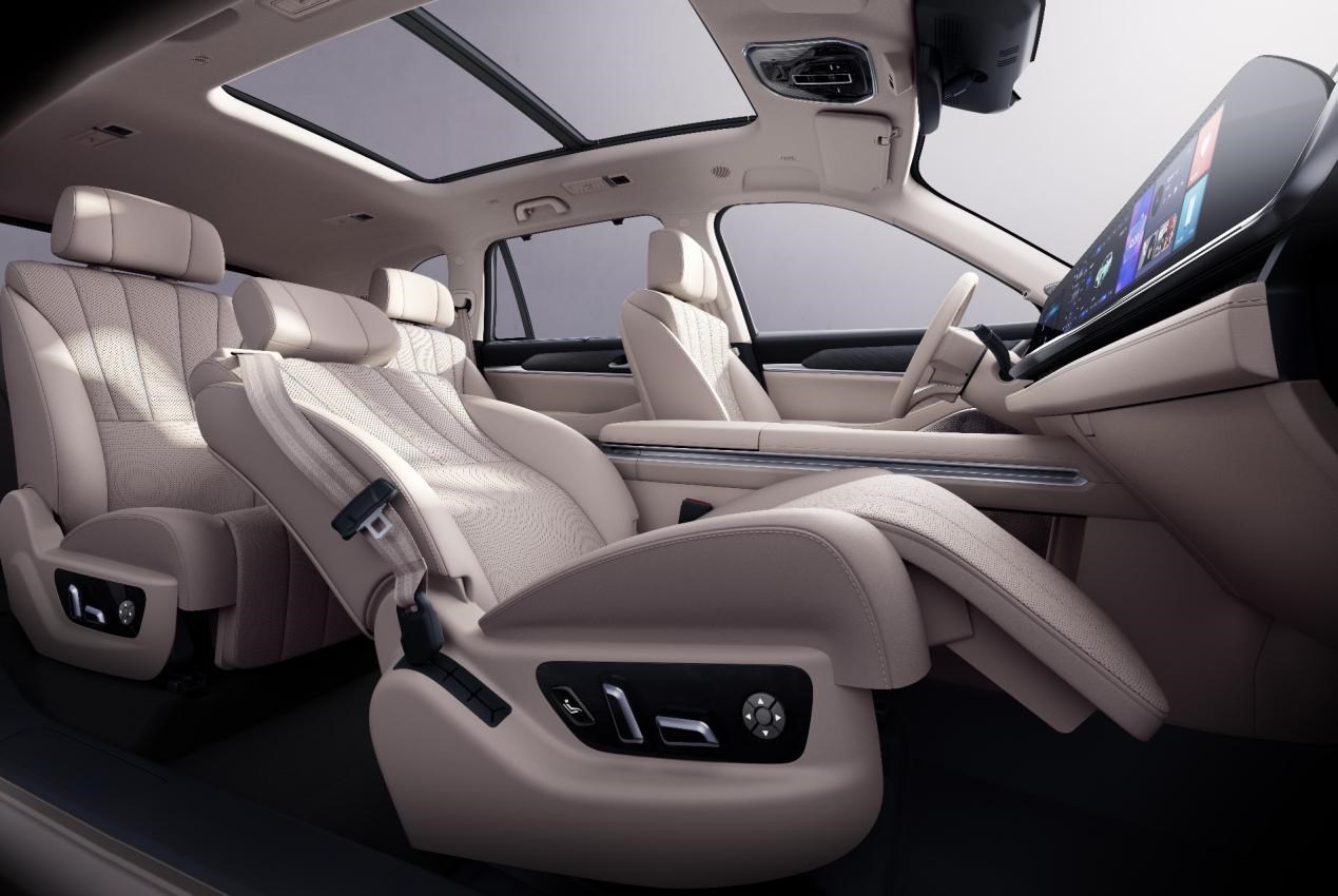 “三排宽适大空间”让每个人都是纵享舒适的“主角”。三排座椅拥有加热功能,且坐垫、靠背宽度最大均达到了540mm,可实现对人体更大面积的承托和支撑,提升乘坐舒适性。同时,基于静音舱设计,坐在第三排也能享有如影随形的静谧。