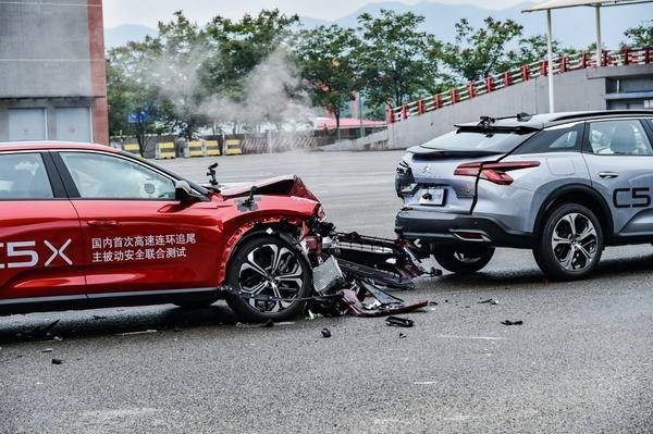 2023年5月9日,中国汽研发起了国内首次高速连环追尾主被动安全联合测试。东风雪铁龙凡尔赛C5 X参与了此次测试,测试中要求样本为三台同款整车进行试验。此次凡尔赛C5 X 2023款第1、2号车进行追尾碰撞,以子之矛攻子之盾,测试被动安全;3号车AEB功能介入刹停,测试主动安全性能。